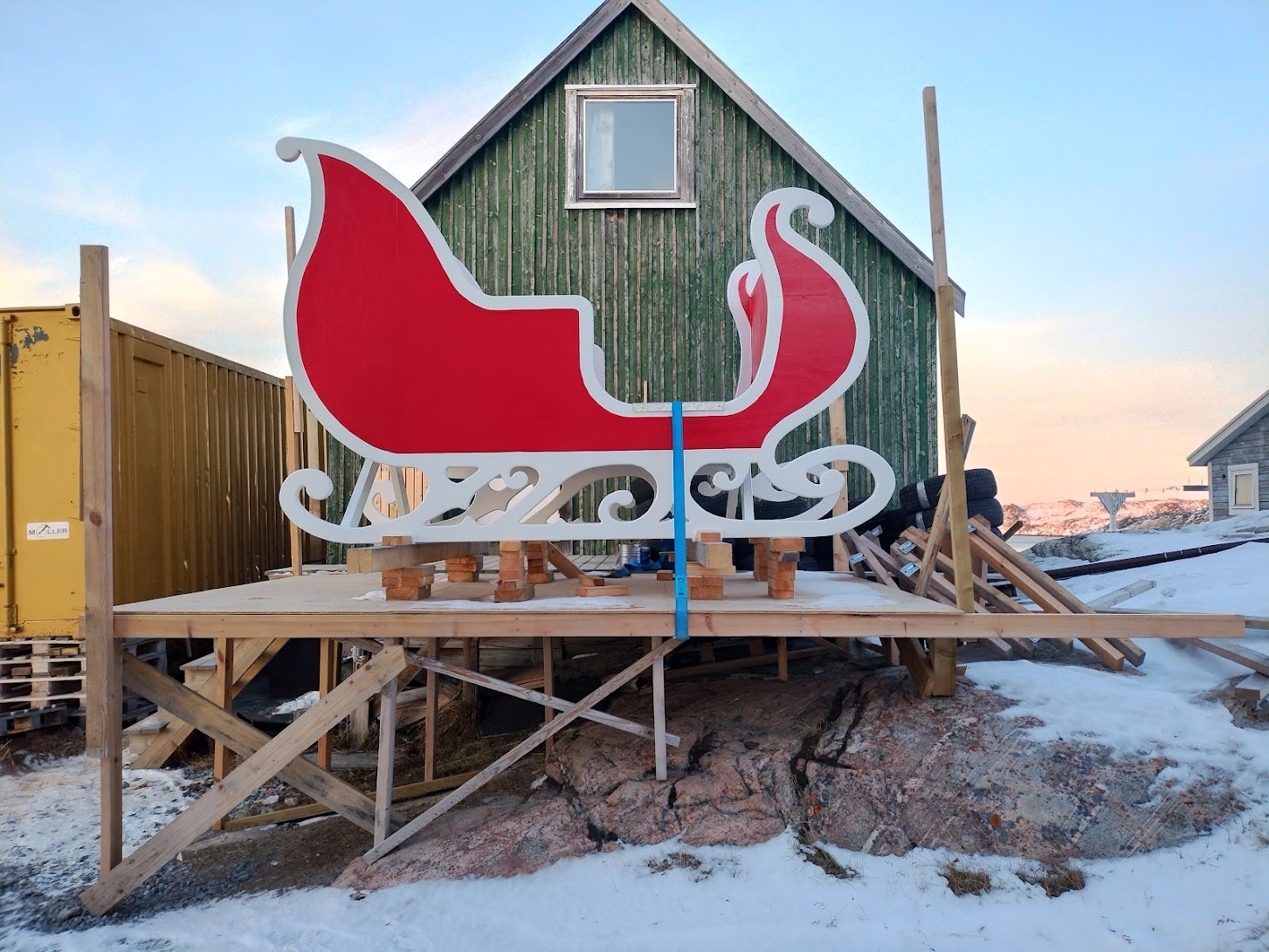 Before I visited Greenland, a couple of people asked me if Greenlanders celebrate Halloween and/or Christmas. The answer is yes! I arrived in Nuuk just a couple days after Halloween and there were quite a few decorations still up. More and more I’ve been seeing Christmas-themed decorations, and today I spotted Santa’s sleigh!